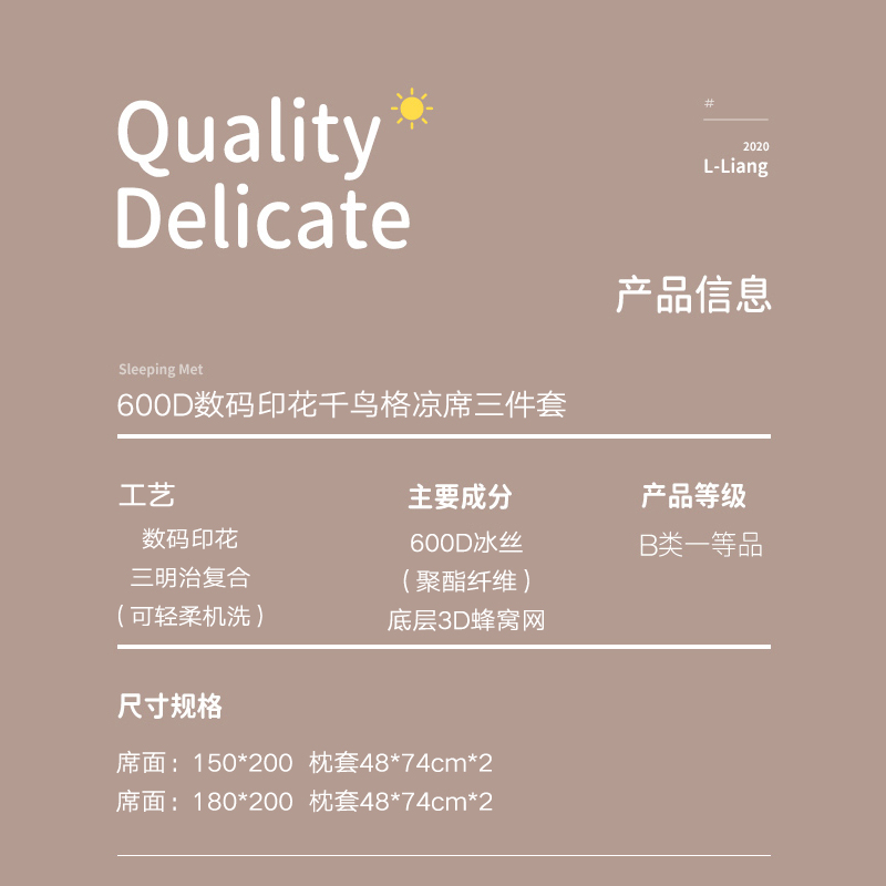 【清新透气加厚三明治】600D数码印花千鸟格【600D冰丝(聚酯纤维)/千鸟格粉】 |