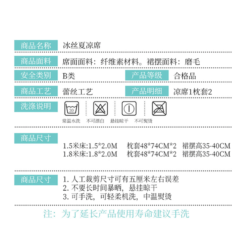 印花蕾丝床裙款冰丝席凉席三件套【冰丝(聚酯纤维)/海星】 |