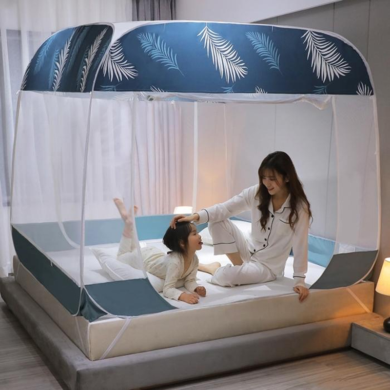 大顶部印花款免安装蚊帐【面料聚酯纤维支架包塑钢丝/蓝叶】 |