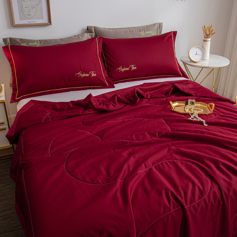 纯色刺绣水洗冰丝大豆纤维夏被【水洗冰丝(聚酯纤维)填充大豆纤维/温莎红】 |