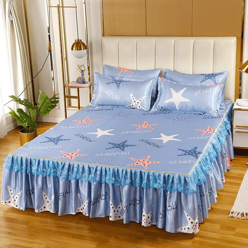 印花蕾丝床裙款冰丝席凉席三件套【冰丝(聚酯纤维)/海星】 |