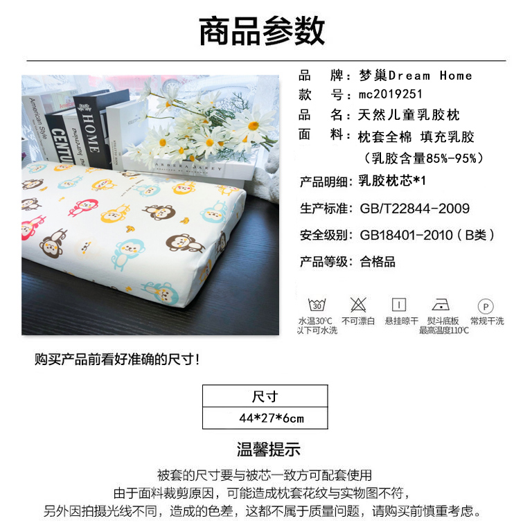 天然乳胶枕(枕头一件)【乳胶(乳胶含量85%-99%)/小猴子】 |