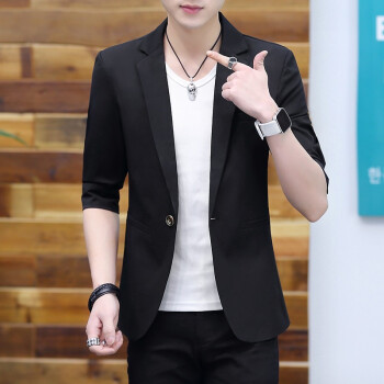 半双西服男2020夏季新款青年潮流纯色七分袖小西装婚礼伴郎礼服韩版修身职业正装外套男士商务休闲夹克Y 黑色 M(建议95-105斤) |