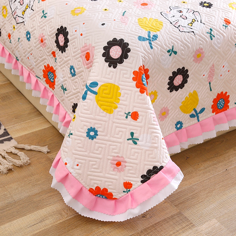 【三层复合】全棉夹棉绗缝床盖三件套【全棉/小花猫】 |