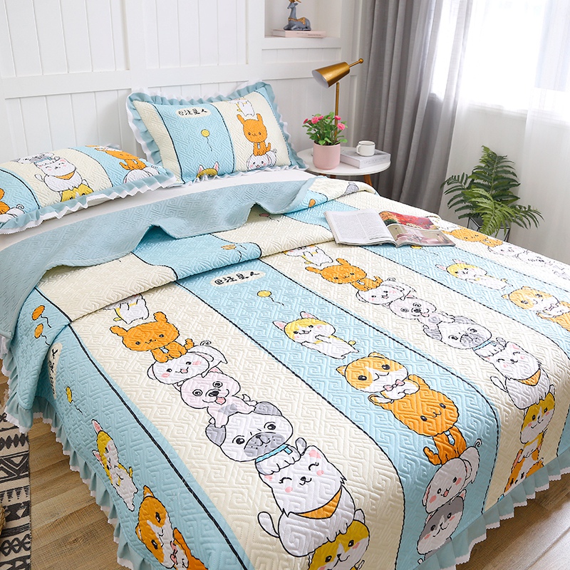 【三层复合】全棉夹棉绗缝床盖三件套【全棉/汪星人】 |