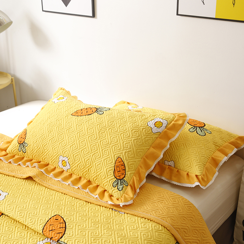 【三层复合】全棉夹棉绗缝床盖三件套【全棉/开心萝卜】 |