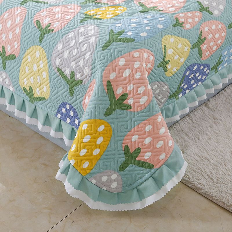 【三层复合】全棉夹棉绗缝床盖三件套【全棉/清新草莓-兰】 |