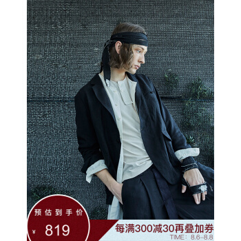 野无西服男原创设计男装2020秋季新款男士纯色长袖后中开叉设计黑色宽松休闲西装外套男 粗粝黑 S |