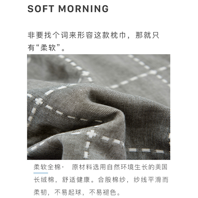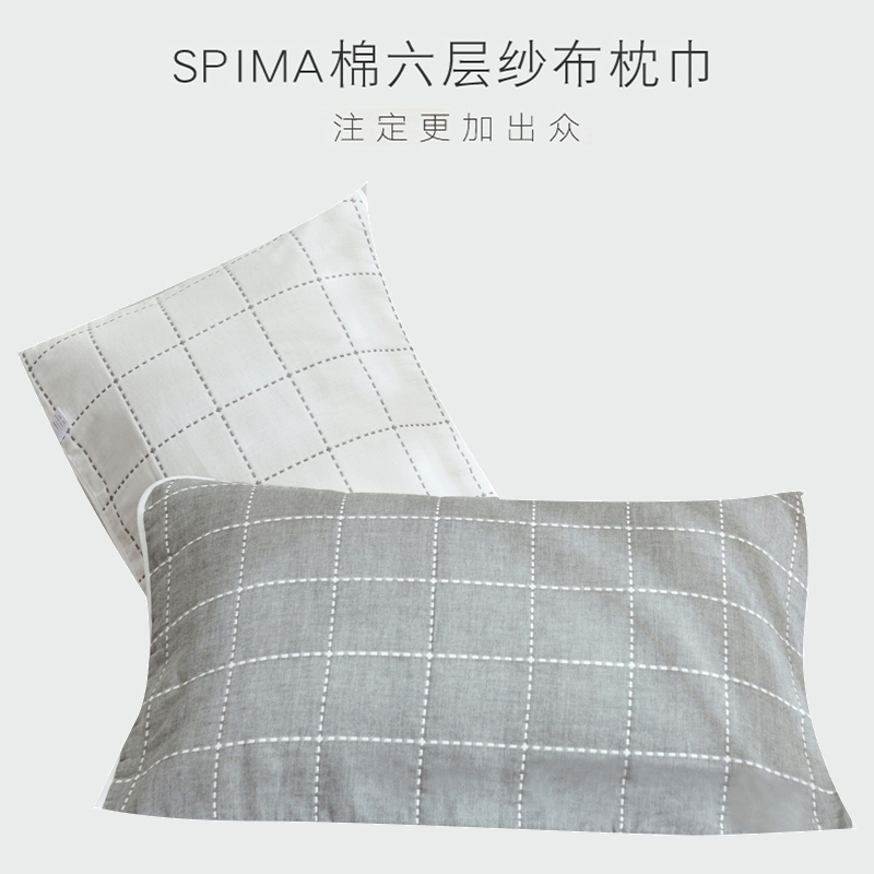 高品质A类全棉六层纱布枕巾一对【A类全棉/枕巾-时尚虚线灰】 |