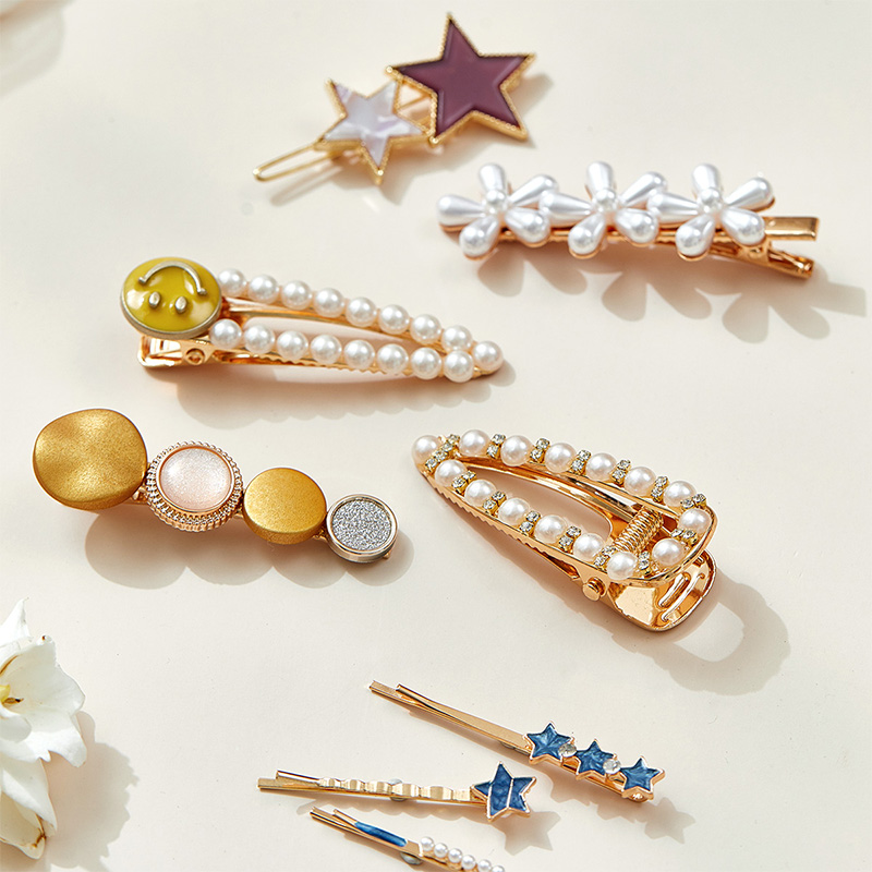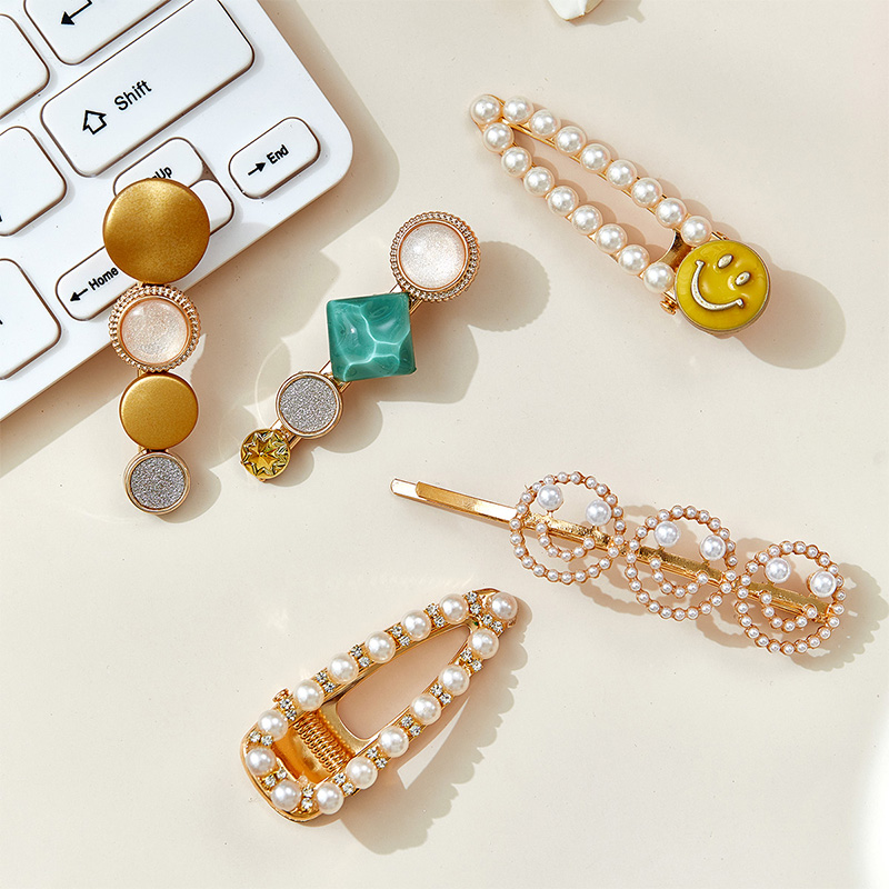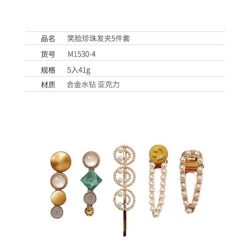 笑脸珍珠发夹5件套【合金水钻 亚克力/笑脸珍珠】 |