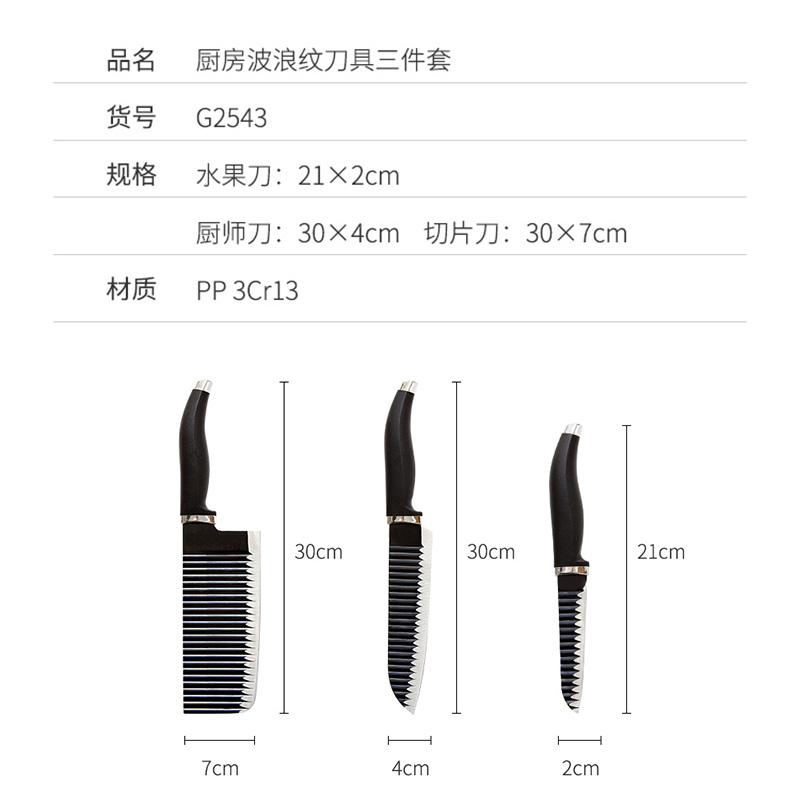 厨房波浪纹刀具三件套【PP 3Cr13/图片色】 |