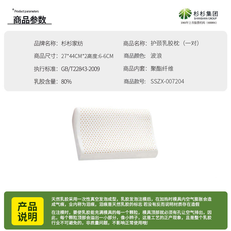 护颈乳胶枕(一对)【面料:聚酯纤维填充:80%天然乳胶/波浪】 |