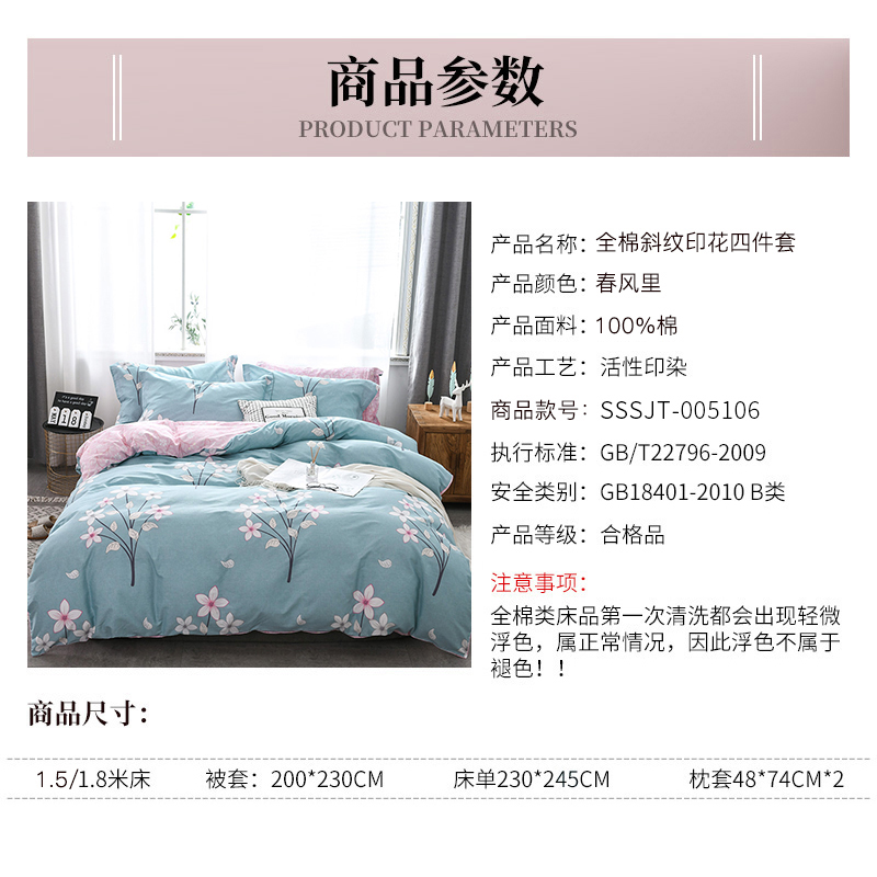 全棉斜纹印花四件套【全棉/春风里】 |