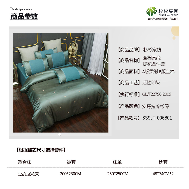 全棉贡缎提花四件套【全棉/安哥拉冷杉绿】 |