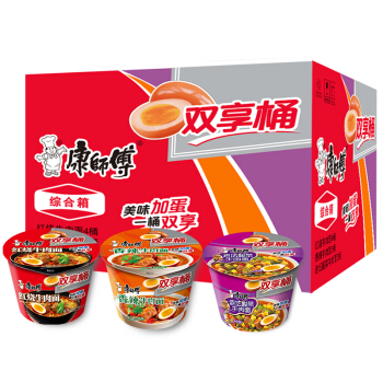 康师傅方便面双享桶红烧牛肉4桶+香辣牛肉2桶+酸菜牛肉2桶 卤蛋面桶面泡面整箱装休闲零食 |