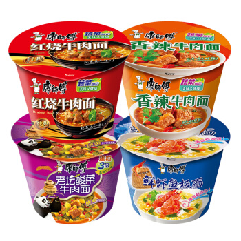 康师傅方便面开心桶红烧牛肉3桶+酸菜牛肉3桶+香辣牛肉3桶+鲜虾鱼板3桶桶面泡面整箱装休闲零食 |