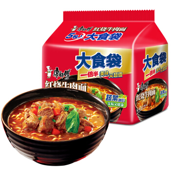 康师傅方便面大食袋红烧牛肉面袋面泡面五连包休闲零食 |