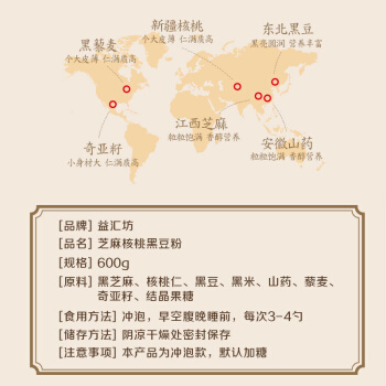 益汇坊 黑芝麻核桃粉 芝麻糊 芝麻粉核桃粉五谷粉 营养 早餐 代餐粉600g |