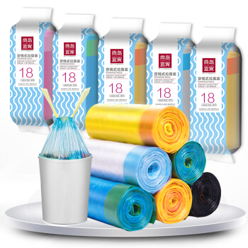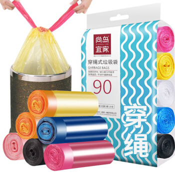 尚岛宜家 抽绳手提式垃圾袋 90只装 中号45*50cm*5卷 加厚 自动收口大垃圾袋 家用办公分类垃圾桶袋 |