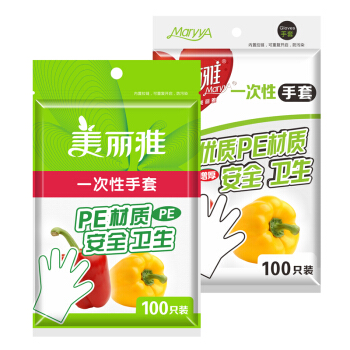美丽雅 一次性手套100只入 PE材质加厚防漏卫生手套 |