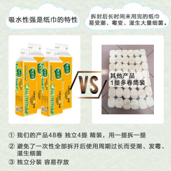 惠艾佳卫生纸48卷纸巾4层厕用手纸家庭装本色竹浆无芯卷筒圈纸批发酒店宾馆厨房纸抽 4提48卷实惠装(约85%客户购买) |