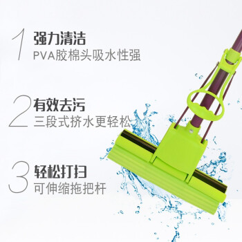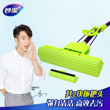 妙洁海绵拖把 家用办公室吸水墩布懒人免手洗自动胶棉托地板挤水式清洁伸缩长杆工具刮水神器 共2个替换头 |
