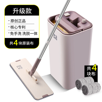 拓朴(TOPOTO)大卫免手洗平板拖把拓扑懒人木地板刮刮乐桶拖布清洁工具墩布干湿两用Z9 1杆4头 |
