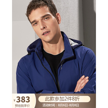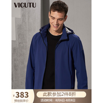 威可多VICUTU秋冬男士风衣防风防水运动休闲轻薄风衣外套VFW18142091 蓝色 170/92B |