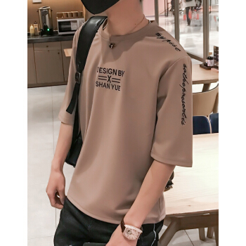 宾的短袖t恤男条纹针织衫新款衣服春季打底衫时尚男士上衣圆领套头半袖 851 卡其 聚酯纤维 XL |