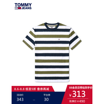 TOMMY JEANS 男装2020春季短袖针织T恤 DM0DM07834 多色条纹0CD M |