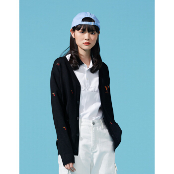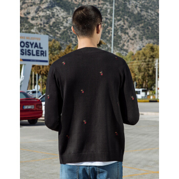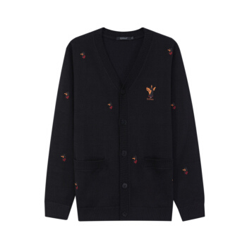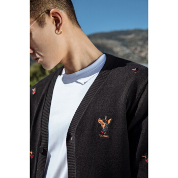 卡宾男装黑色针织衫外套2020春夏新款杜宾犬刺绣简约时尚情侣装B 煤黑色01 52/180/XL |