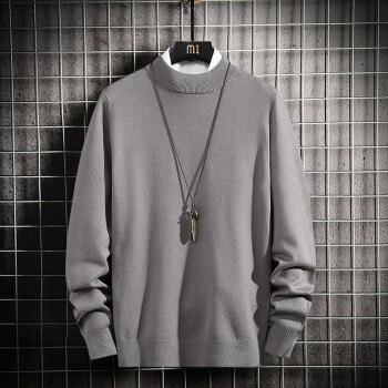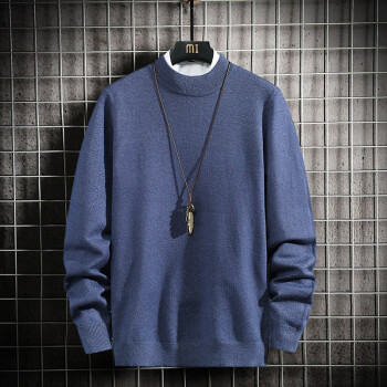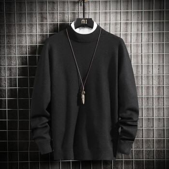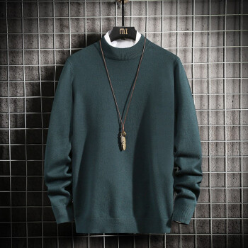 蓝缕金【LANLVJIN】毛衣男秋季新品宽松线衣男青年套头半高领针织衫纯色长袖体恤针织衫2020 墨绿色 |