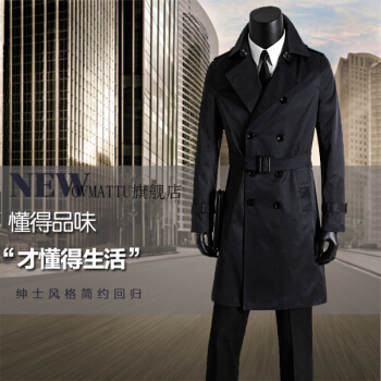 GORANKADI香港潮牌男装新款双排扣长款英伦风衣修身防水外套大衣有大码 黑色 2XL |