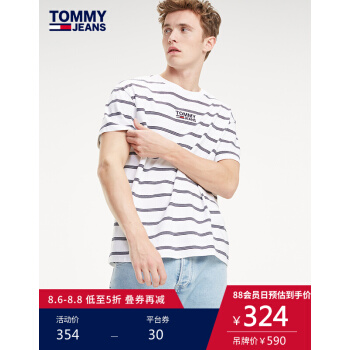 TOMMY JEANS 男装春夏短袖针织T恤(宽松版)-DM0DM06069 白色条纹100 M |