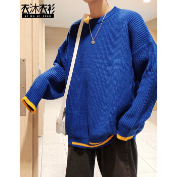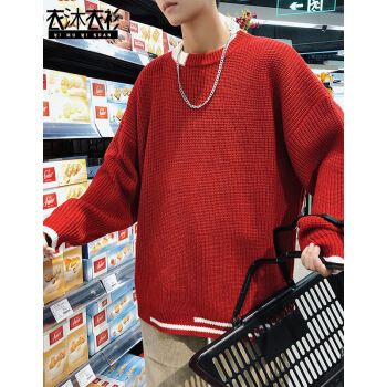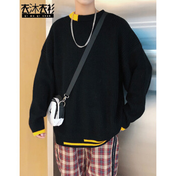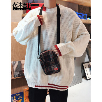 衣沐衣衫 秋冬毛衣男宽松外套韩版时尚撞色圆领休闲上衣学生毛线衣潮流文艺chic男生针织衫 白色 XL |