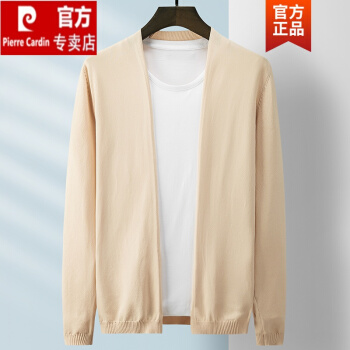 皮尔卡丹2020轻奢新品 针冰丝薄款衫男装针织衫开衫外套潮2020夏季凉爽透气纯色防晒衣织 卡其色 XXL |