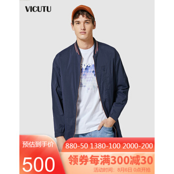 VICUTU/威可多男士风衣中长款时尚简约棒球领休闲修身外套男VRW18142868 蓝色 180/96A |