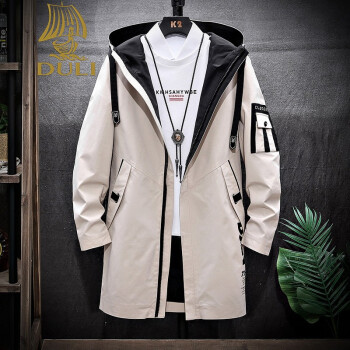 独励(DULI)青少年风衣男中长款韩版潮流春秋季2020新款初中高中学生帅气外套 DCQ8035卡其 XL |