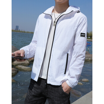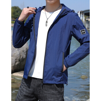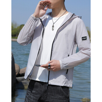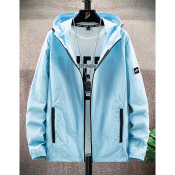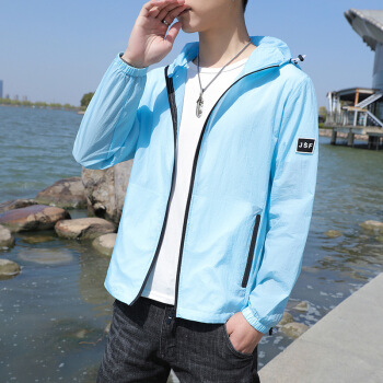 富贵鸟防晒服男夏季2020新款防晒衣男超薄透气连帽潮流薄款透气夏天大码外套衫青年男装钓鱼服皮肤衣 浅蓝 XL |