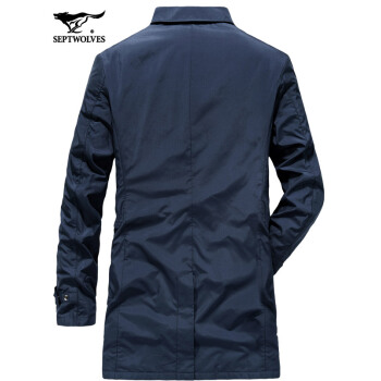 七匹狼风衣男中长款2020秋季新款中年修身韩版帅气加棉保暖休闲夹克外套潮 102(深蓝) 175/92A/XL |