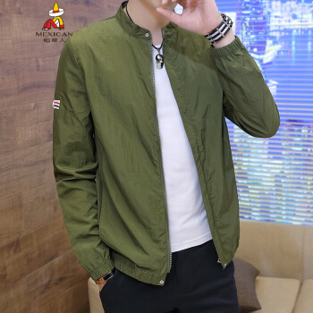 稻草人防晒衣男2020夏季新品超薄款透气防紫外线皮肤衣男士韩版潮流帅气风衣夹克外套户外连帽防晒服男 军绿色 3XL |