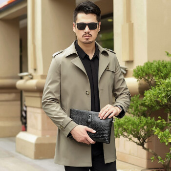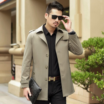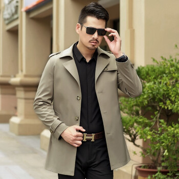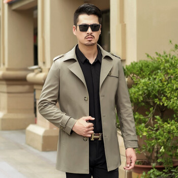 卡帝乐鳄鱼2020秋冬新款风衣夹克男 中青年商务翻领英伦风修身秋季防风可选冬季加厚保暖男士中长款外套 卡其春秋款 XL(180) |