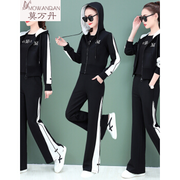 莫万丹高端新品卫衣女阔腿裤休闲运动套装女2020新款秋季韩版宽松洋气运动服三件套装MW9896 8813胭红 3XL |