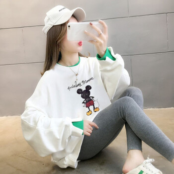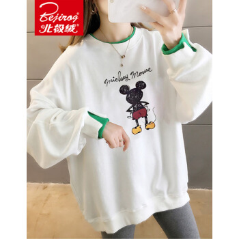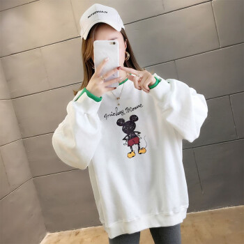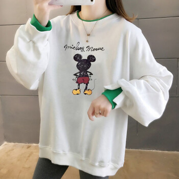 北极绒卫衣女2020春秋季新品潮流时尚卡通印花圆领卫衣女休闲宽松套头长袖假两件上衣女2505 白色 请拍正确尺码 |