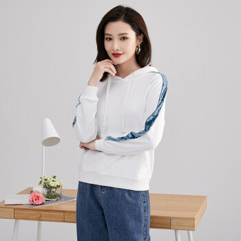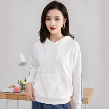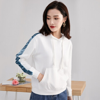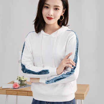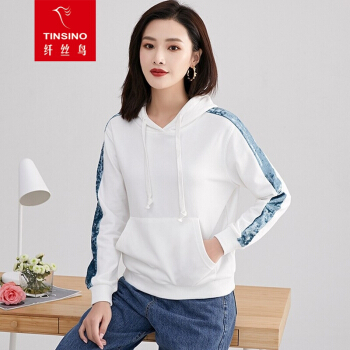 纤丝鸟 TINSINO 卫衣女2020秋季新品韩版慵懒风连帽卫衣时尚休闲长袖上衣宽松显瘦外套女 白绿色 请拍正确尺码 |