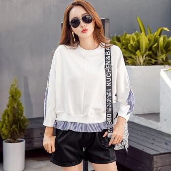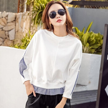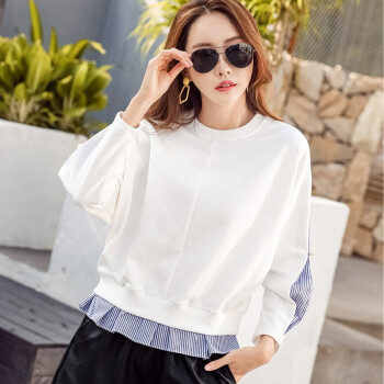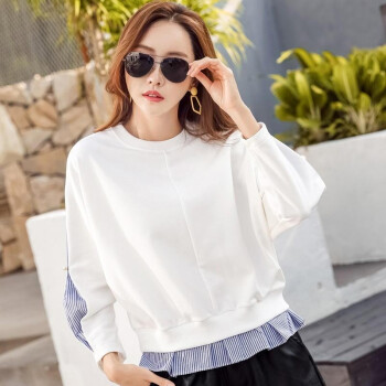 帕兰朵 卫衣女2020秋季新款圆领慵懒风打底衫上衣女韩版宽松显瘦时尚外套 典雅白 请拍正确尺码 |