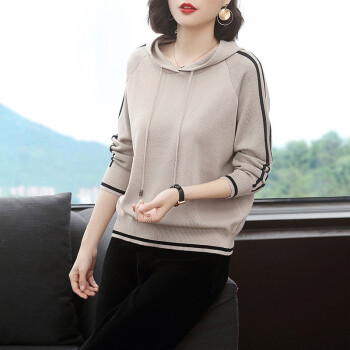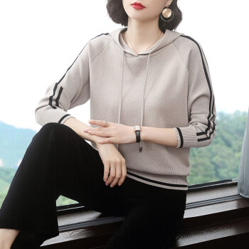 【精选好货】晞薇女士卫衣2020春秋装新款时尚女装韩版带帽40岁中年妈妈宽松春秋百搭优雅上衣打底衫女 杏色 请拍正确尺码或咨询客服 |