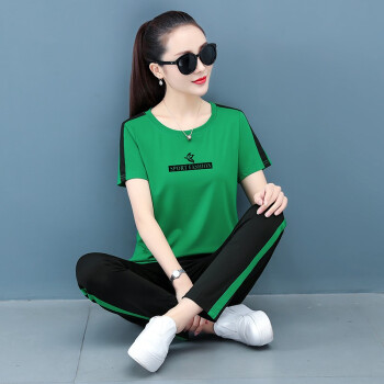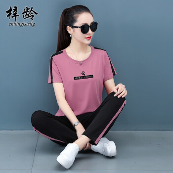 梓龄 运动套装女休闲裤女2020夏季新款圆领卫衣女T恤短袖长裤宽松显瘦洋气大码女装休闲套装女两件套 豆沙色 此码勿拍,请拍对应尺码 |