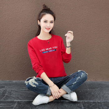 恋着你 白色卫衣女宽松2020春秋装薄款圆领女士长袖t恤韩版潮流闺蜜装打底衫学生百搭外套 白色 S(建议80斤以内) |