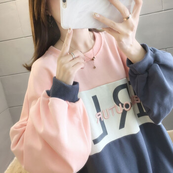 卡赫希卫衣女2020春秋季新款慵懒风百搭休闲学生上衣女时尚宽松圆领长袖拼接中长款女卫衣5006 灰色 请拍正确尺码 |